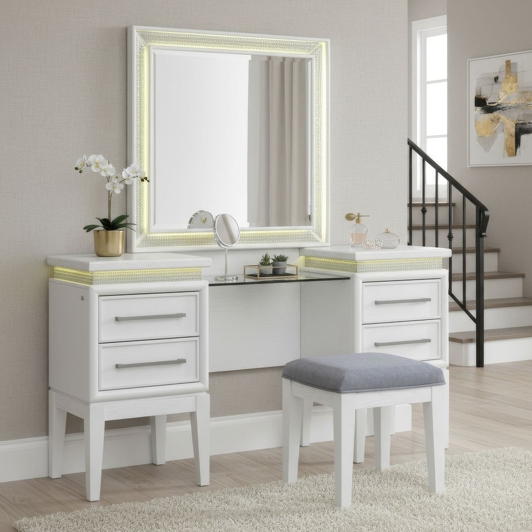 Reflections - Vanity Desk - Pearl White & Rhinestone