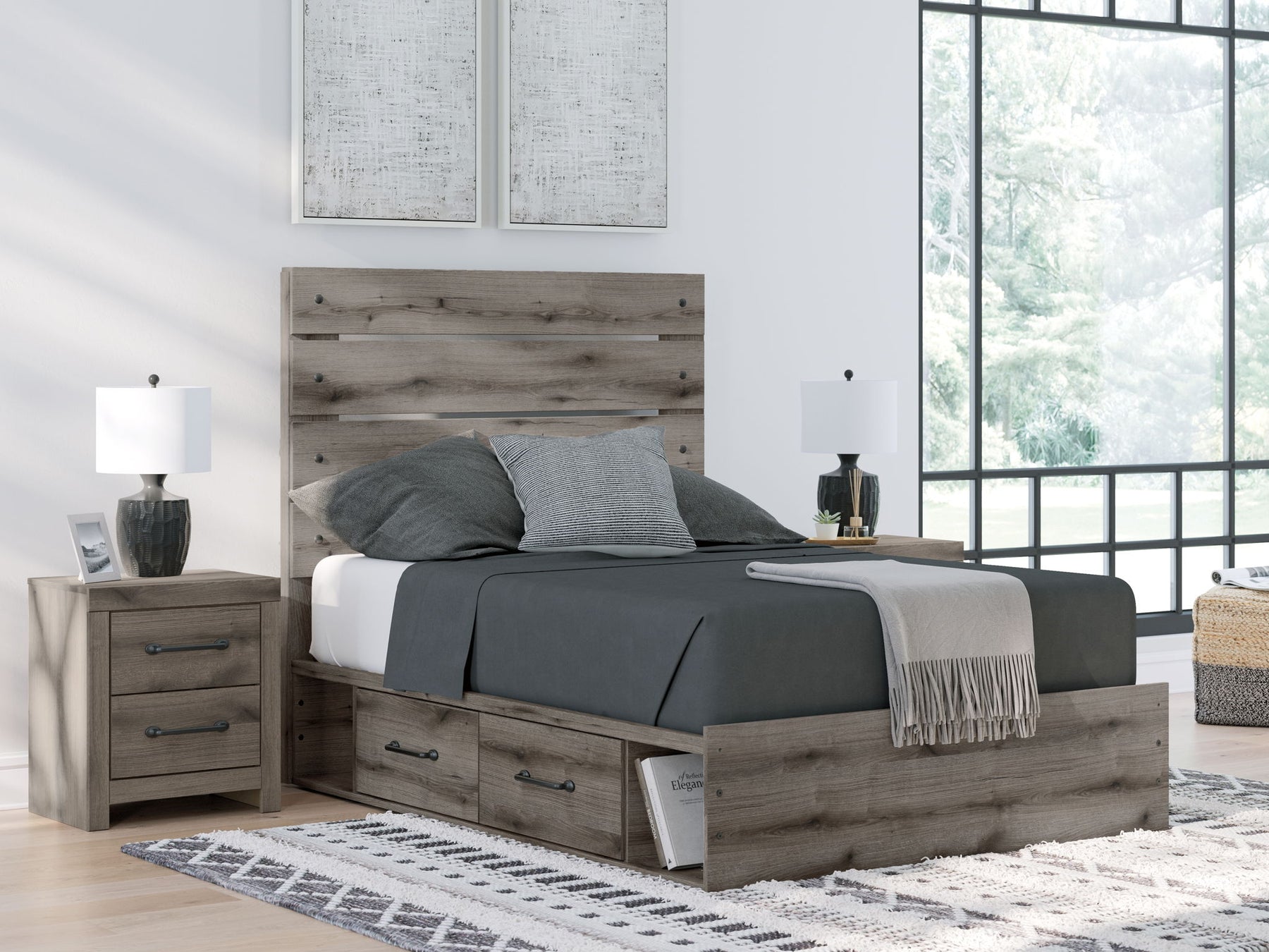 Graystorm - Full Panel Bed With Storage - Brown Gray