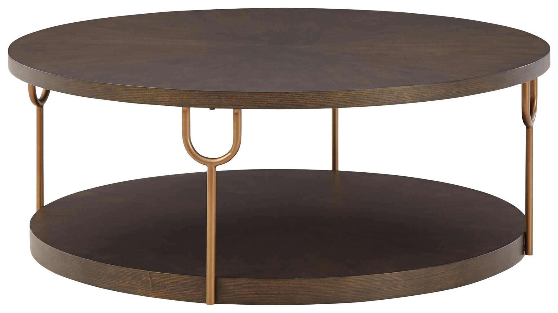 Brazburn - Round Cocktail Table - Dark Brown / Gold Finish